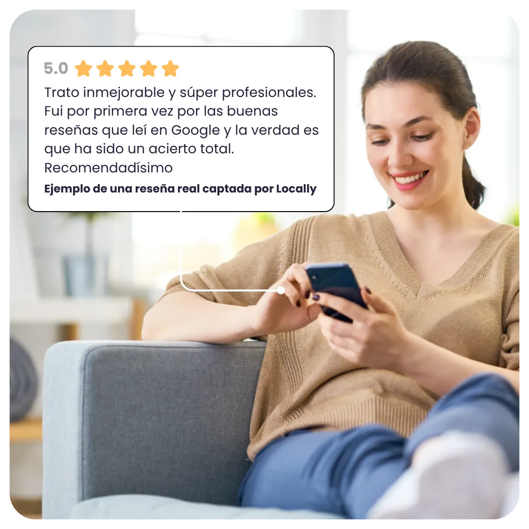 El 84% de la gente confía tanto en una reseña de Google como en la recomendación directa de un amigo. Deja que tus propios clientes se encarguen de vender por ti